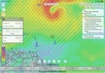 We then downloaded the forecasts from the web, which shows a very large Tropical low, expected to form into a Tropical storm in the next day or so more than 700m N of us. It’s that that accounts for our wind hole.